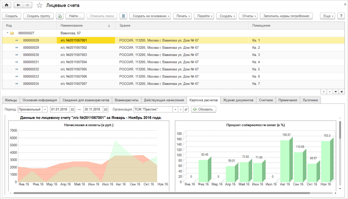 Решение 1С: Управляющая компании – отраслевая программа 1С, которая учитывает особенности сферы управления ЖКХ, ТСЖ и ЖСК. Программный продукт в комплексе автоматизирует задачи отрасли ЖКХ: расчет квартплаты, производство начислений, штрафов и пеней, налоговый и бухучет и др. Также программа позволяет подключить личный кабинет жителей и сайт ЖКХ.