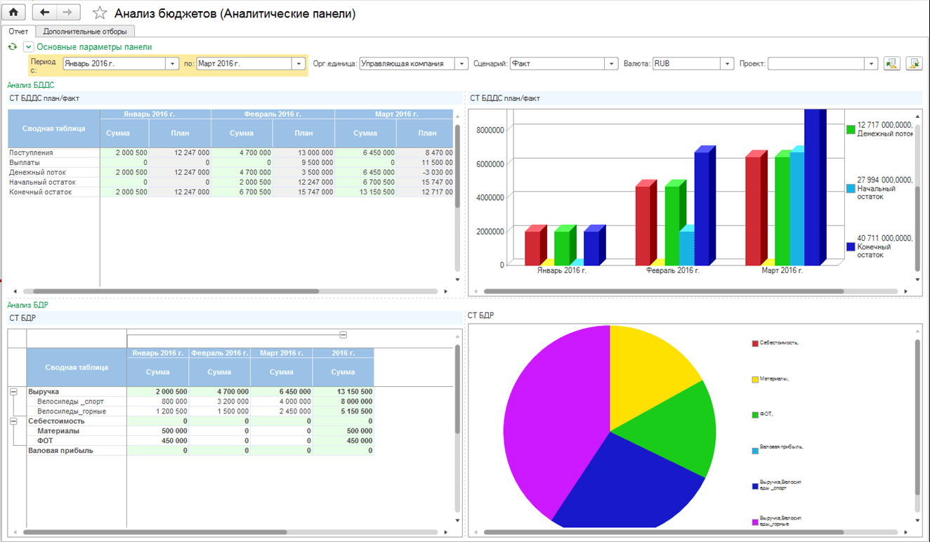 Аналитические панели предназначены для вывода и обработки различных данных в одной форме и позволяют: