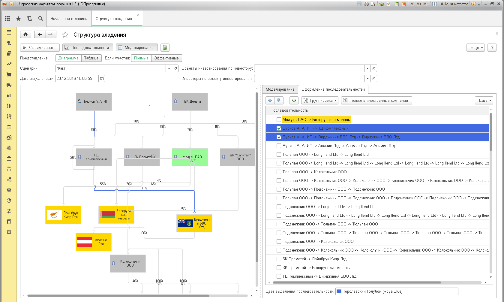 • Расчет эффективной доли участия с учетом как прямого, так и косвенного владения