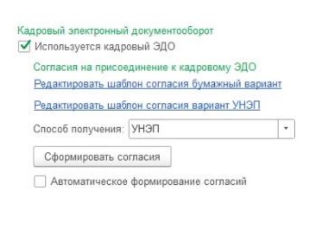 Справа вы увидите настройки по КЭДО (рис. 2). Здесь можно изменить предустановленные шаблоны по ссылкам «Редактировать шаблон согласия бумажный вариант» и «Редактировать шаблон согласия вариант УНЭП», при нажатии которых открывается макет шаблона (рис. 3). Здесь же можно выбрать способ получения сотрудником этого документа. Есть два варианта: «УНЭП» и «Бумажный документ». Также есть флажок для автоматического формирования согласия. При активном флажке документы будут сформированы и отправлены в сервис сразу же после публикации данных по сотруднику. По кнопке «Сформировать согласия» будут созданы и отправлены согласия по опубликованным сотрудникам.