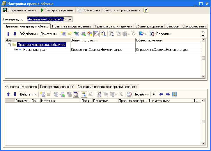 С учётом того, как работает «1С: конвертация данных», стоит отдельно рассмотреть параметры выгрузки. Если просто поставить соответствие между реквизитами источника и приёмника, корректного результата достичь не выйдет. Программа без помощи просто не может понять, какие объекты нужно выгрузить тем или иным методом, поскольку их структура различается.