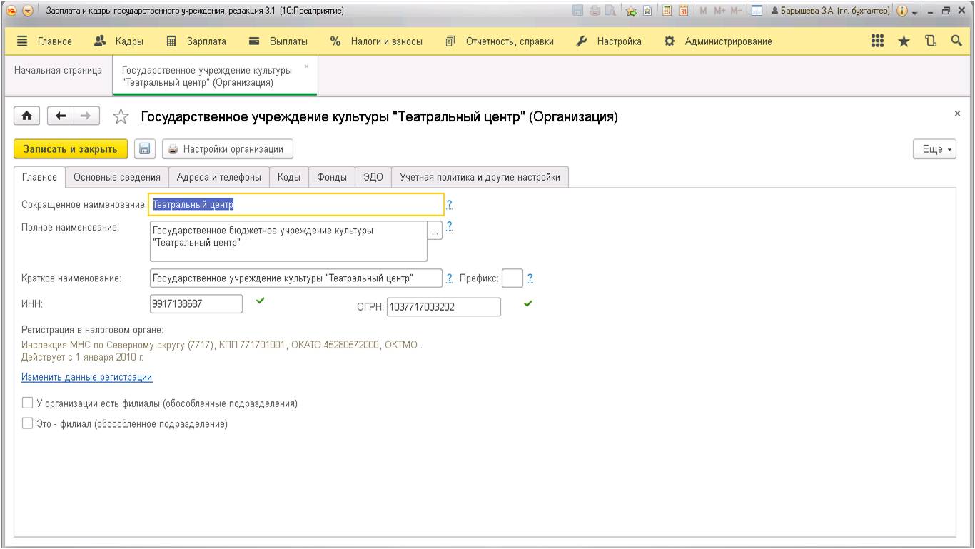 Для всех вариантов начисления заранее нужно указать даты выплат аванса и зарплаты. Для этого из раздела настроек необходимо перейти по гиперссылке «Реквизиты организации»: