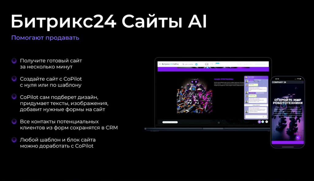 Теперь CoPilot может разрабатывать сайты практически без вашего участия. Достаточно описать задачу, например, «Нужен сайт для стоматологической клиники с минималистичным дизайном», и AI выполнит всю работу: продумает структуру страницы, блоки, напишет тексты и подберет изображения.