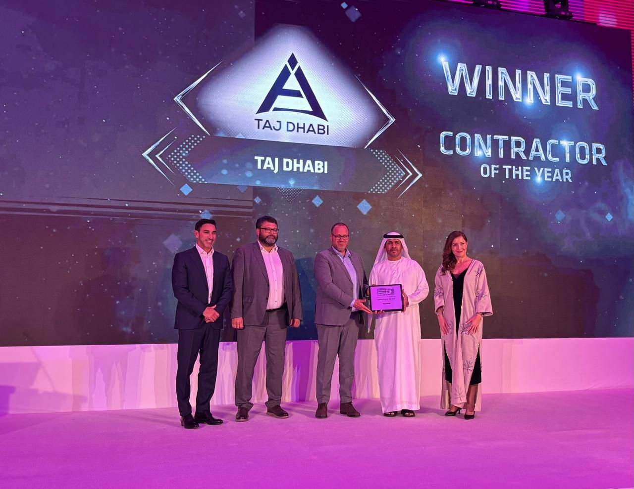 В завершении цифровой стройконференции состоялась церемония награждения: First Bit вручил премию Contractor of the Year компании Taj Dhabi.